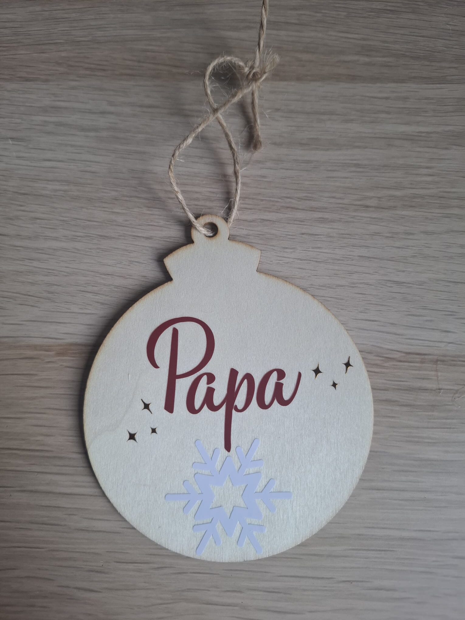 Apportez une touche naturelle et chaleureuse à votre décoration de fêtes avec cette boule de Noël en bois, délicatement ornée de l’inscription “Papa”. Son design simple et élégant allie authenticité et esprit festif, pour un sapin qui respire la douceur et la tradition.