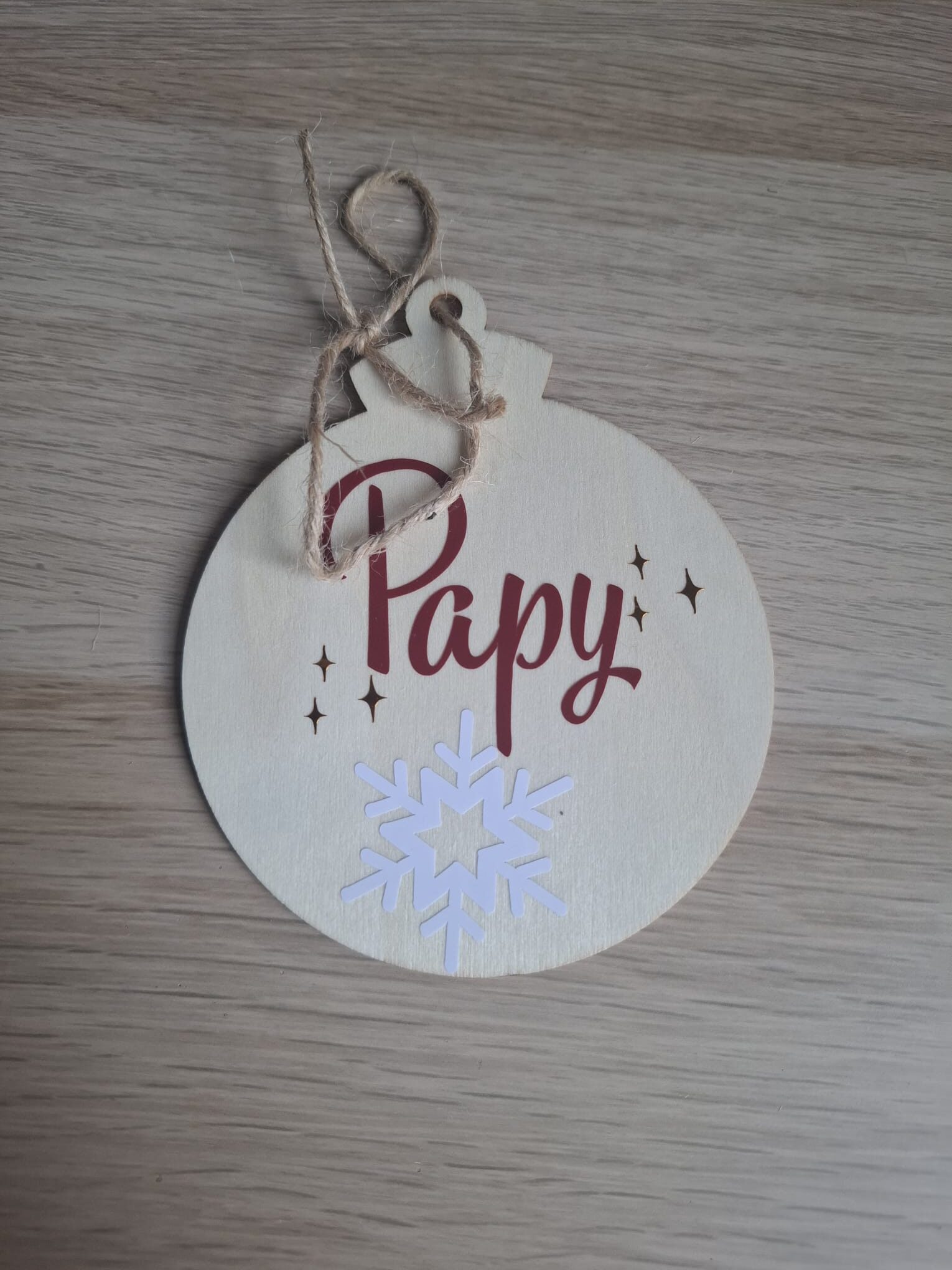 Apportez une touche naturelle et chaleureuse à votre décoration de fêtes avec cette boule de Noël en bois, délicatement ornée de l’inscription “Papy”. Son design simple et élégant allie authenticité et esprit festif, pour un sapin qui respire la douceur et la tradition.