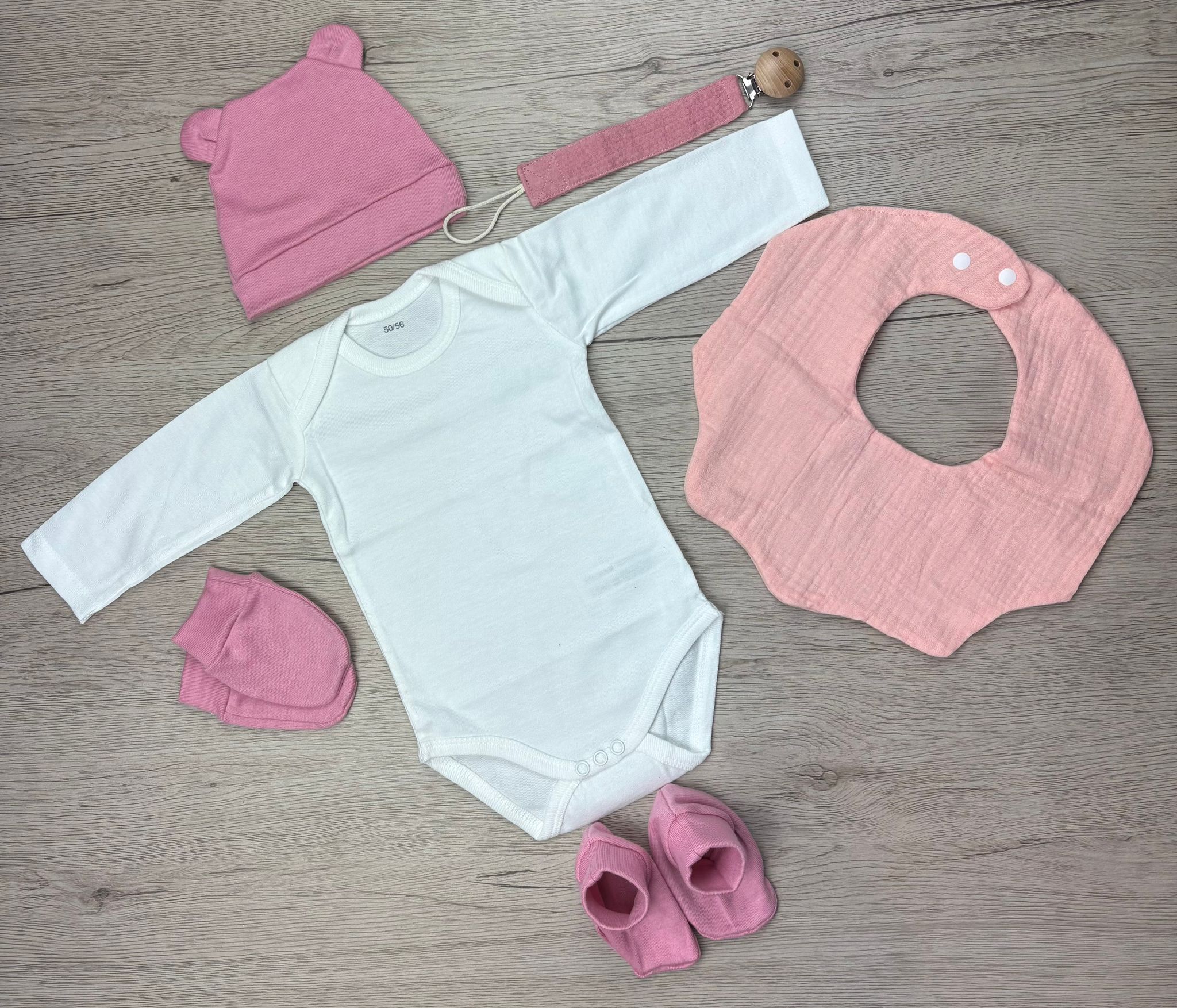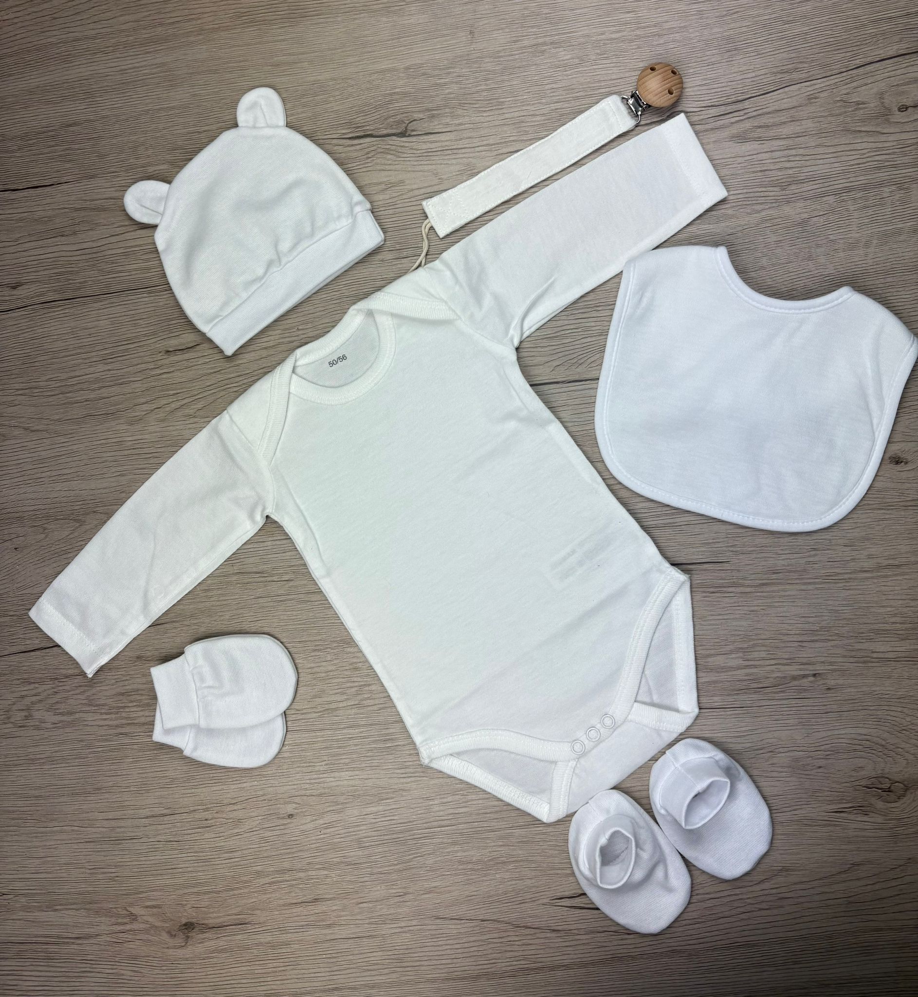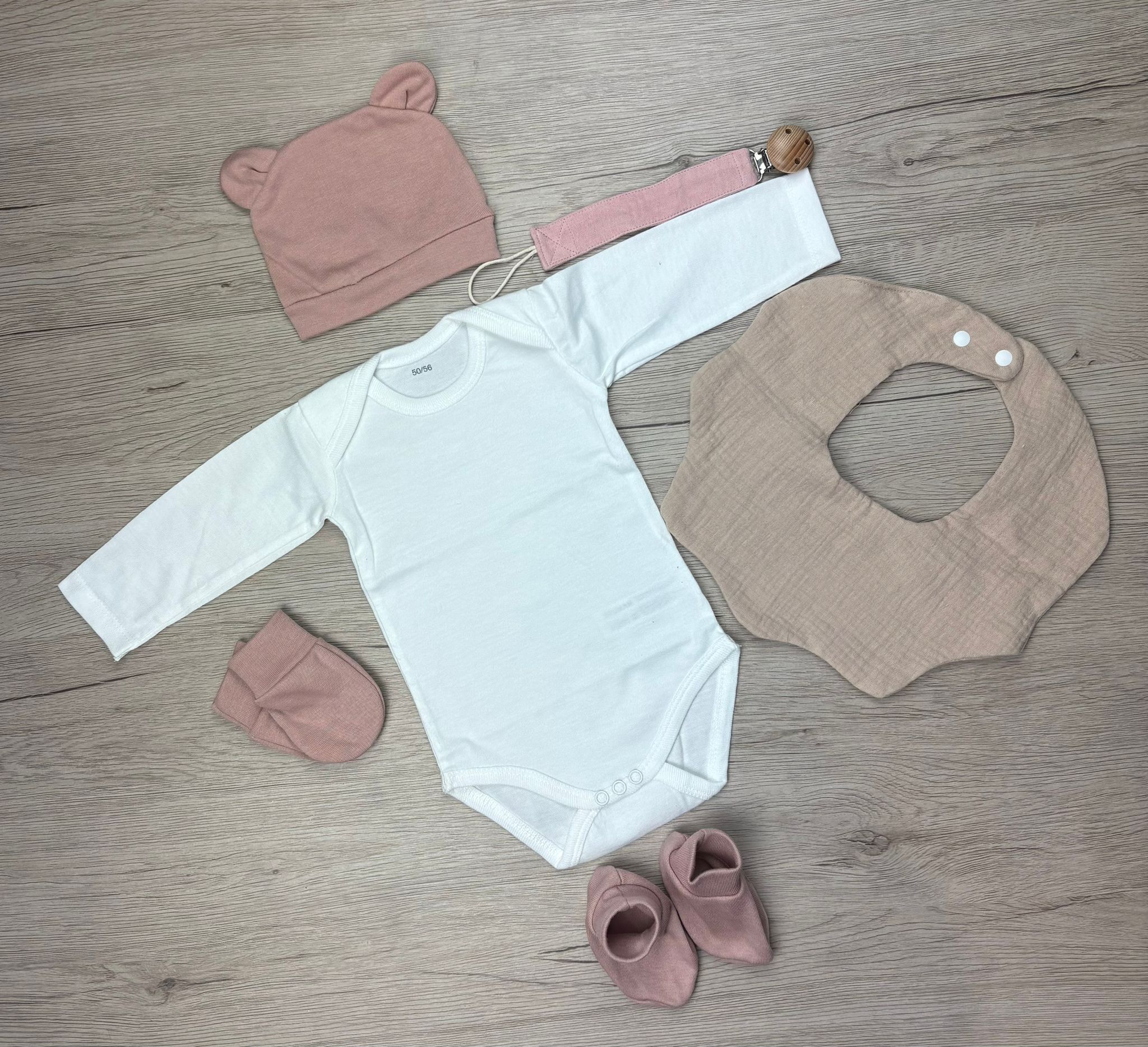 Notre box naissance personnalisée contient trois essentiels pour les tout premiers jours : un bavoir, une attache sucette, un body, un bonnet, une paire de mouffles, et de chaussons assortis. Chaque pièce est confectionnée avec des matières douces et confortables, pensées pour la peau délicate des nouveau-nés.
