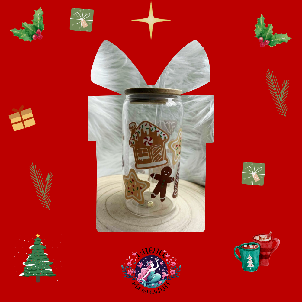 Apporte la chaleur et la douceur de Noël à ta table avec ce superbe verre à paille sur le thème Pain d’épice. Orné de motifs gourmands et festifs rappelant les célèbres biscuits de Noël, il transforme chaque boisson en un vrai moment de plaisir. Idéal pour un chocolat chaud, un lait parfumé à la cannelle ou un jus de fruits hivernal, ce verre apportera une ambiance conviviale et féérique à tes fêtes.